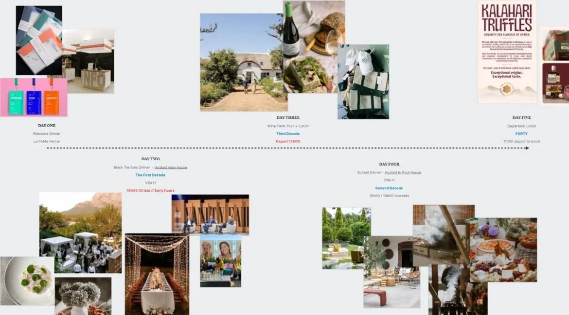 Recently hosting the B40 Summit in Franschhoek, we focussed on 5-star local pop-up experiences. Too many points were in our favour not to; situated in wine country, hosting world-renowned hospitality venues and chefs, uncharted views, and rich local heritage entertainment. It created an effortless program and gave the audience an ‘unattainable’ like experience - because you won’t be able to have this sequence of events off the shelf ever again. And I always like that approach. Give them something true to your authentic style but make it unforgettable.
